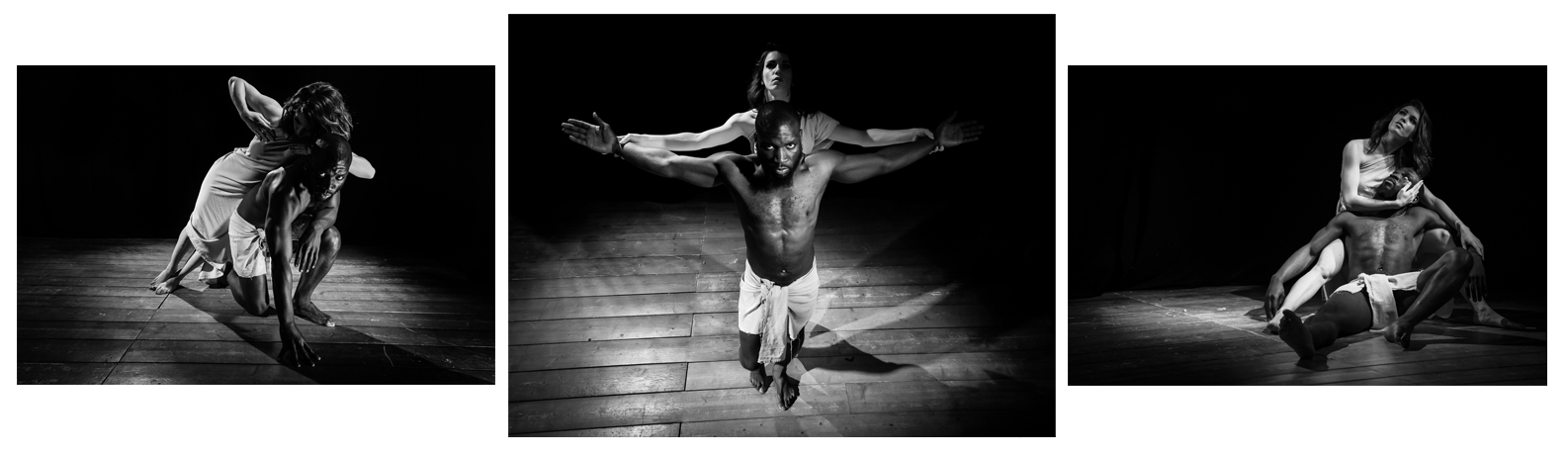 Maintenant il fallait traiter ces images mais en le dégageant de tout aspect religieux, tout en préservant ces forces et tensions. Je voulais aussi contraster tant visuellement qu’au niveau de la symbolique, nourrir ces images d’ombre et de lumière, de force et de fragilité. J’ai donc eu l’idée de remplacer la croix par un modèle féminin et il me restait à trouver mon Christ.